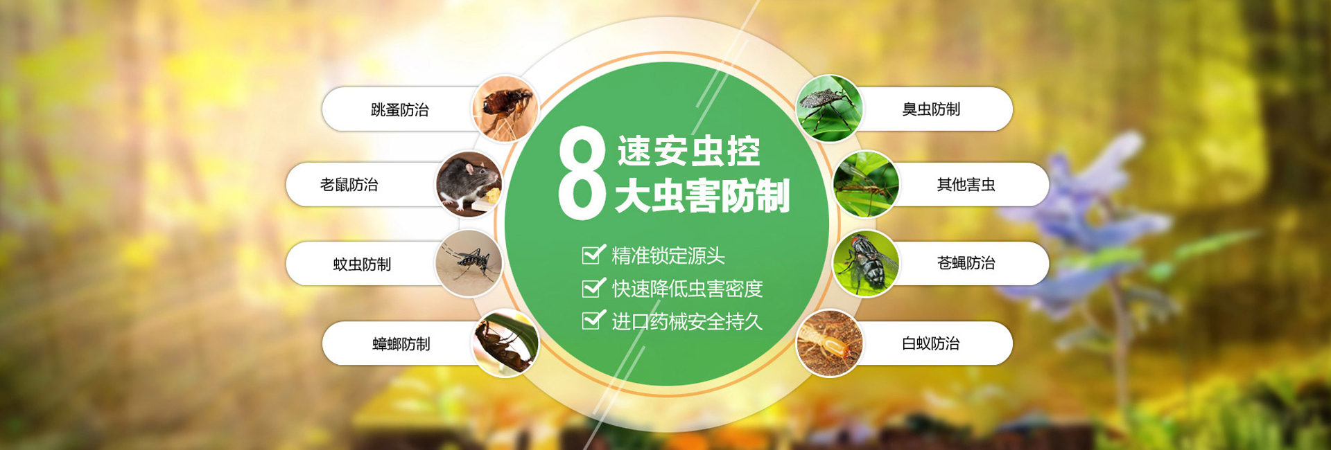 服務(wù)于為賓館飯店、餐飲業(yè)、食品加工業(yè)、建筑業(yè)、商場、超市、學(xué)校、工廠、醫(yī)院等單位和家庭提供鼠蟲害等有害生物防治。